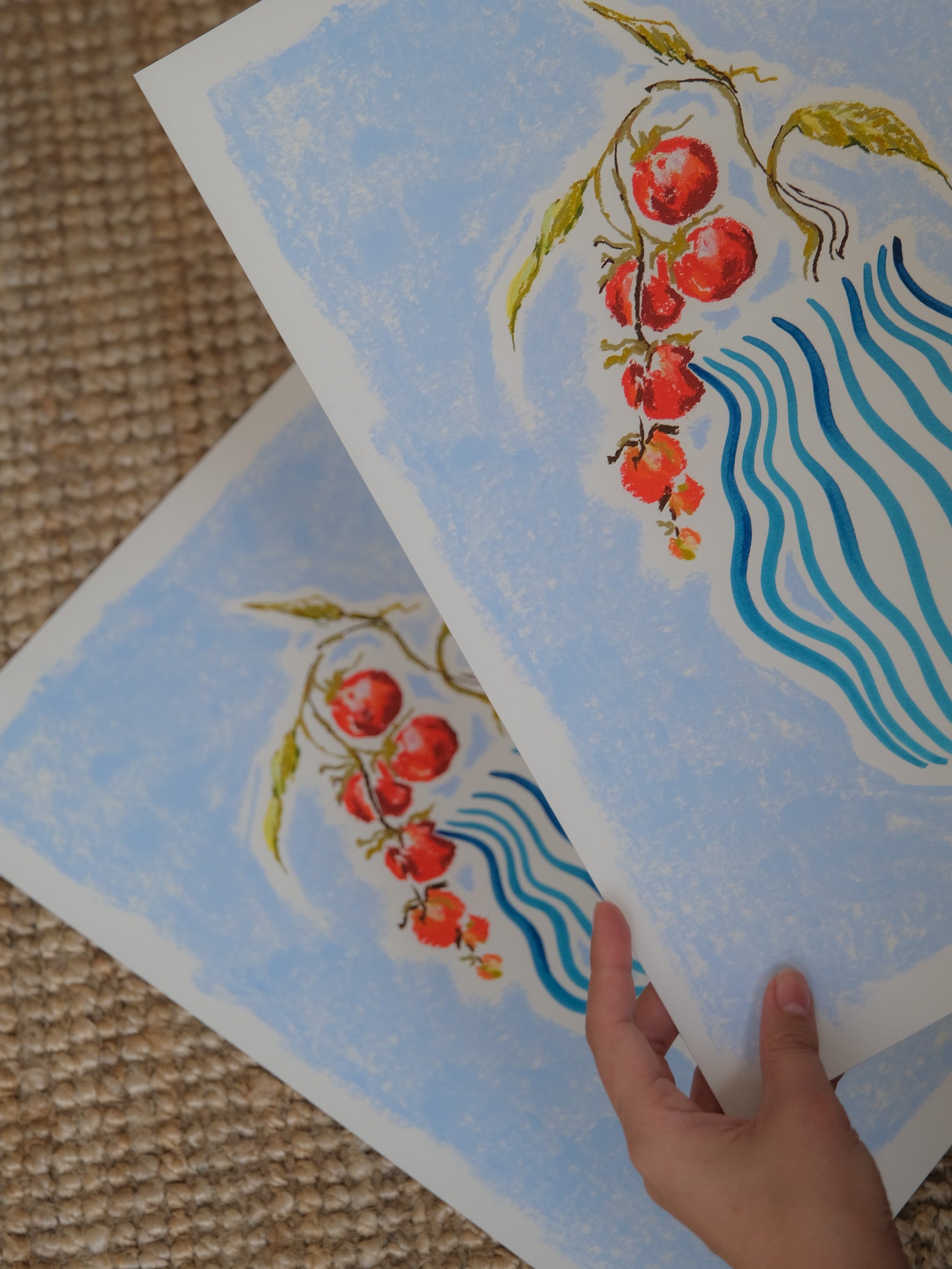 “Arrangement of Tomatoes” is an original fine art print that reimagines a classic still life through a contemporary lens. With its bold shapes, subtle hues, and serene arrangement, the composition holds a quiet confidence — a moment captured between calm and intensity.